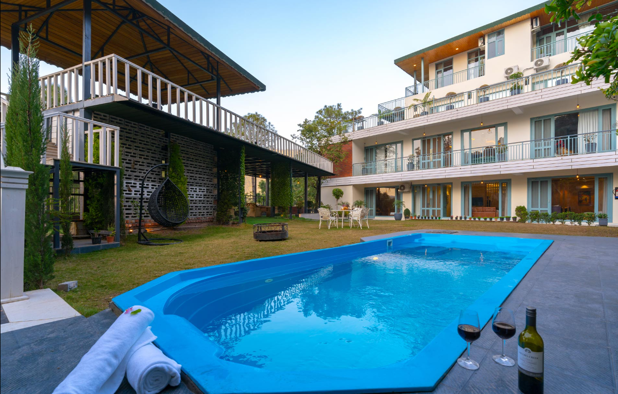 Aykon Villa Estate: Luxurious Kasauli resort with stunning views, private balconies, swimming pool, spa, gym, library, and a restaurant serving delicious Indian and Continental cuisine. 24-hour room service, laundry, and Wi-Fi are available.